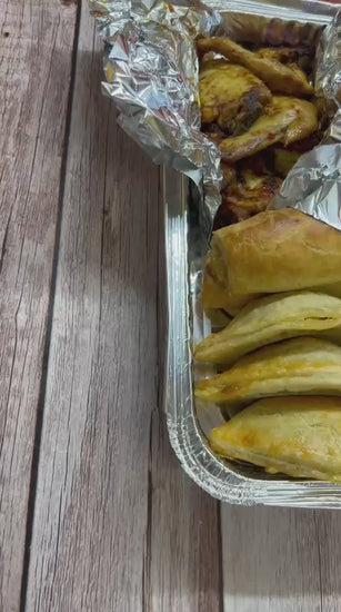 Indulge in the Snacks Fiesta, a refined selection featuring 5 savory meat pies, 5 classic sausage rolls, 10 plain puff puffs, 10 Oreo-infused puff puffs, and 6 succulent chicken wings. Priced at £26, this assortment offers a balanced variety of flavors perfect for any gathering. Enhance your experience by adding a drink for just £4 more, bringing the total to £30. Elevate your snack time with this elegant and satisfying collection.